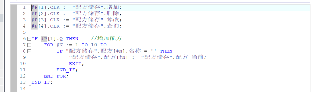 如圖是一個配方程序,先調用4個上升沿,但是實際下載進PLC,點擊配方增加按鈕,P[1]的CLK獲得信號,Q點無輸出,這是啥原因