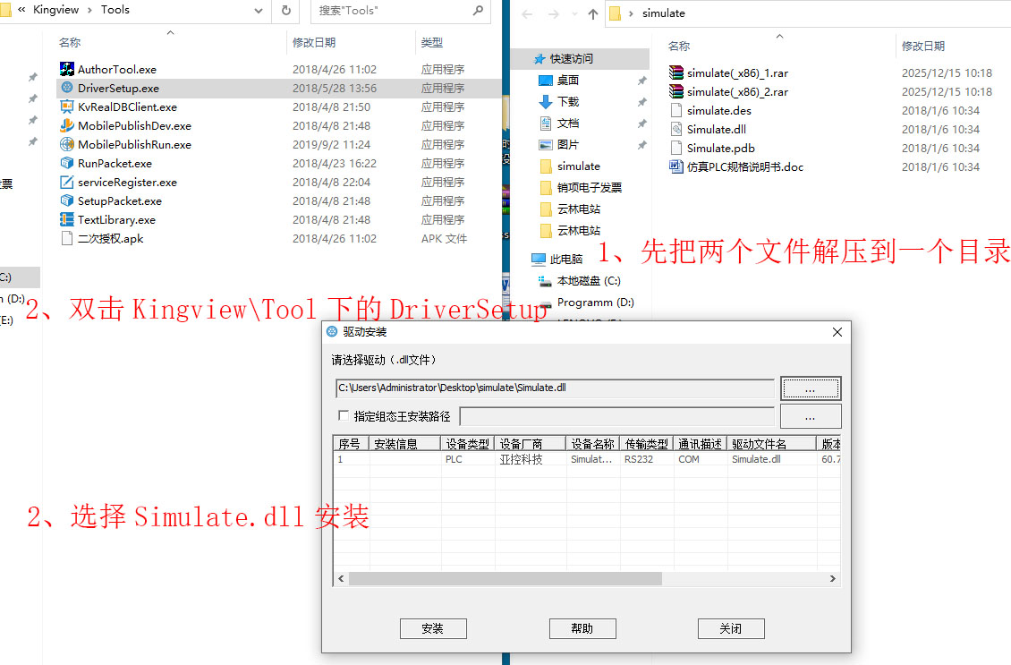把兩個壓縮文件解壓到一個文件夾,用Kingview目錄下的DriverSetup.exe程序安裝這個驅動文件啊。