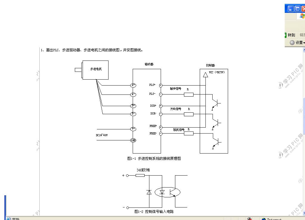 1、畫出PLC、步進驅動器、步進電機之間的接線圖,并安圖接線。