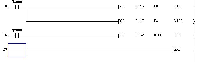如果D146乘以K8得的結果不大于32767,就比如9乘以8得72,那么72它就 保存在D150還是D151,還是保存在(D150  D151)中,以至于下面可以用16位的減法?