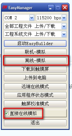 我編寫一個簡單的"切換開關"程序"用的EB500軟件.PLC是FX2N的.用軟件"在線模擬"時會顯示"PLC  no    response"  為什?