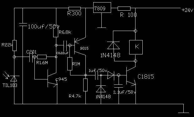 要求是:1)供電電壓是24v           2)當(dāng)紅外線接收管接收到紅外光時(shí)能夠驅(qū)動(dòng)一個(gè)24伏繼電器閉合