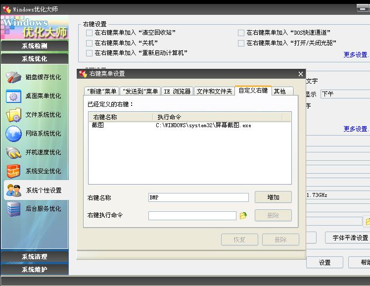 用優化大師或者超級兔子加進右鍵快捷方式好了。