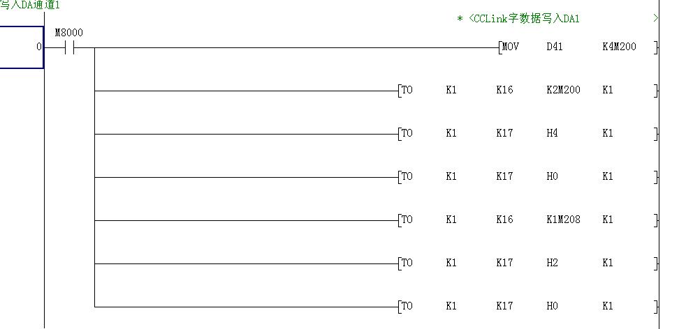 MOV D41 K4M200:把D41數(shù)據(jù)復(fù)制到M200~M215這16位;這樣K2M200(M200~M207)就是D41的低8位,K1M208就是D41.b8~D41.b11這4位值。