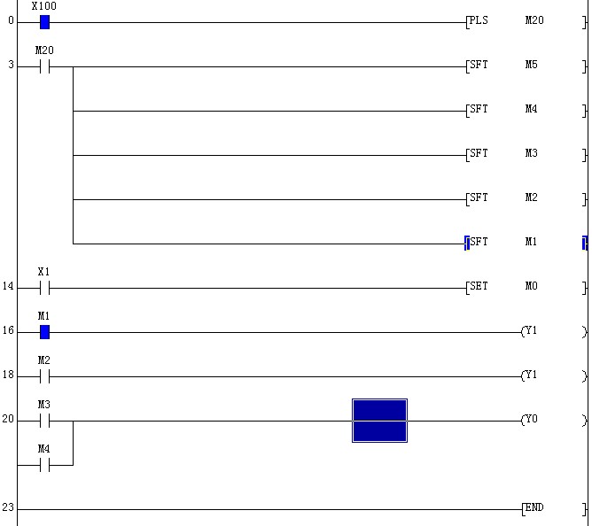 例如  此程序  為什么 y1不會得點!如果再  象上移   M2得電的時候   Y1會得電!   PLC是  Q02h的!