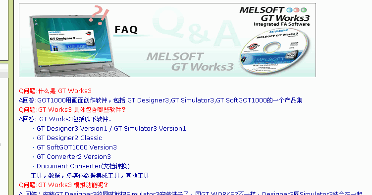 不知道你們有沒有去下載頁看說明,這個說了已經(jīng)很清楚了,是GT-WORKS3 不僅僅是GT Designer3,為什么沒有傳說中的中1G那么大,是因為省了很多文檔,因為那些文檔日文的,并不是很容易看懂 ![]() |