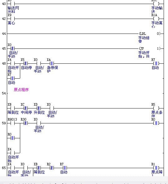 謝謝指教,如果是R7那個位壞了,為什么用MC指令手動自動轉換可以,而用JP或CALL指令就不行了,我想問題是不是在跳轉指令執行后R7是不是保持原來的狀態,因為X0斷開后跳轉到了手動程序段,而R7在自動程序段,如果真是這樣這段程序應該怎么寫哪???