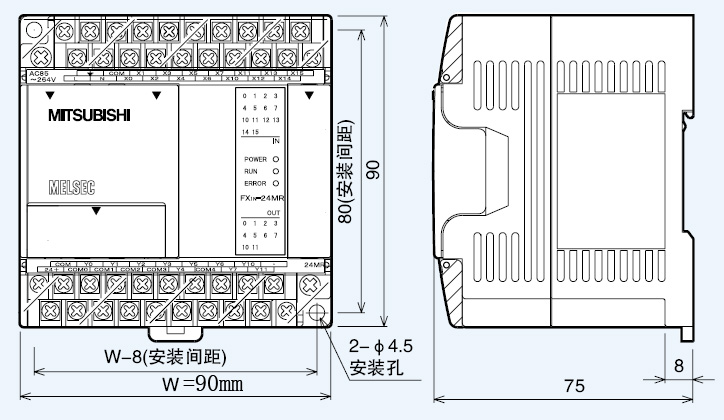 FX1s-20MR、FX1N-24MR型號相近,貼圖尺寸為FX1N-24MR