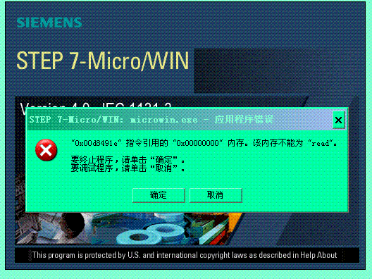 我怎么安裝的STEP 7 - MicroWIN V4.0 incl. SP6軟件,在雙擊圖標后出現一個錯誤圖標,“應用程序錯誤,,,,,,此內存不能為read等等”是啥問題呢?