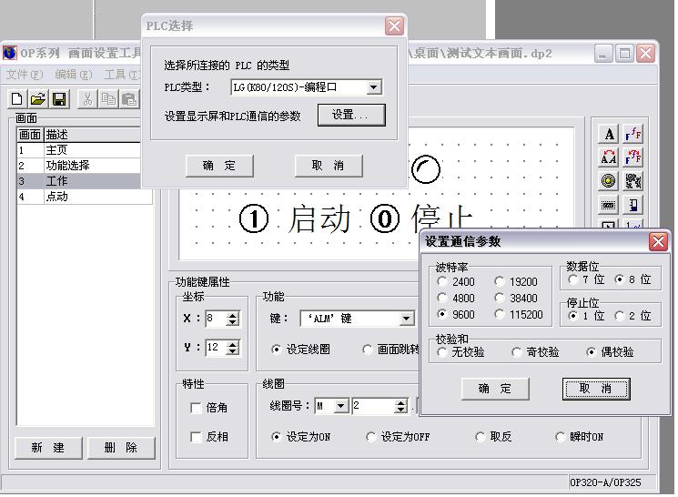 我是用文本的編輯軟件隨便做倆畫面,然后設置的與其連接的PLC 類型,