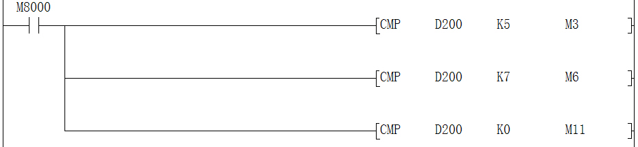 OMRON的比較指令,需要用標志位來判斷的,如果你三個放在一起,會以最后一次比較的標志位來做為最終結果的。