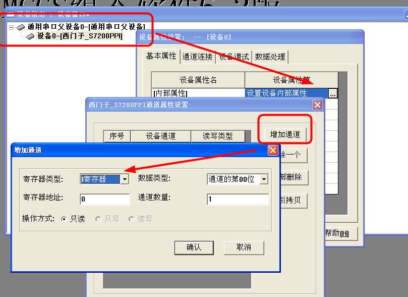 插入串口父設備——PPI通訊驅動——設備內部屬性——增加通道。