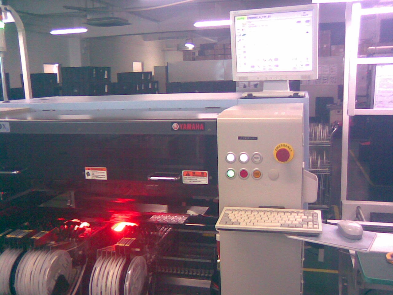 這張是沒辦法用手機拍的,因為相機沒電了,真倒霉呀。這是YAMAHA三軸機器人在貼片。