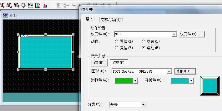 (其中M100可在HMI中設置一下按鈕屬性設成M100,按就輸出,不按就無輸出。)