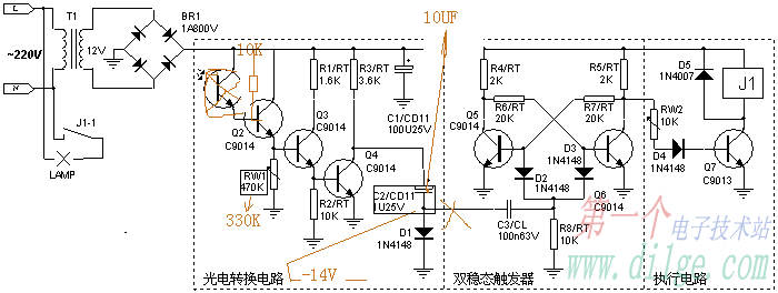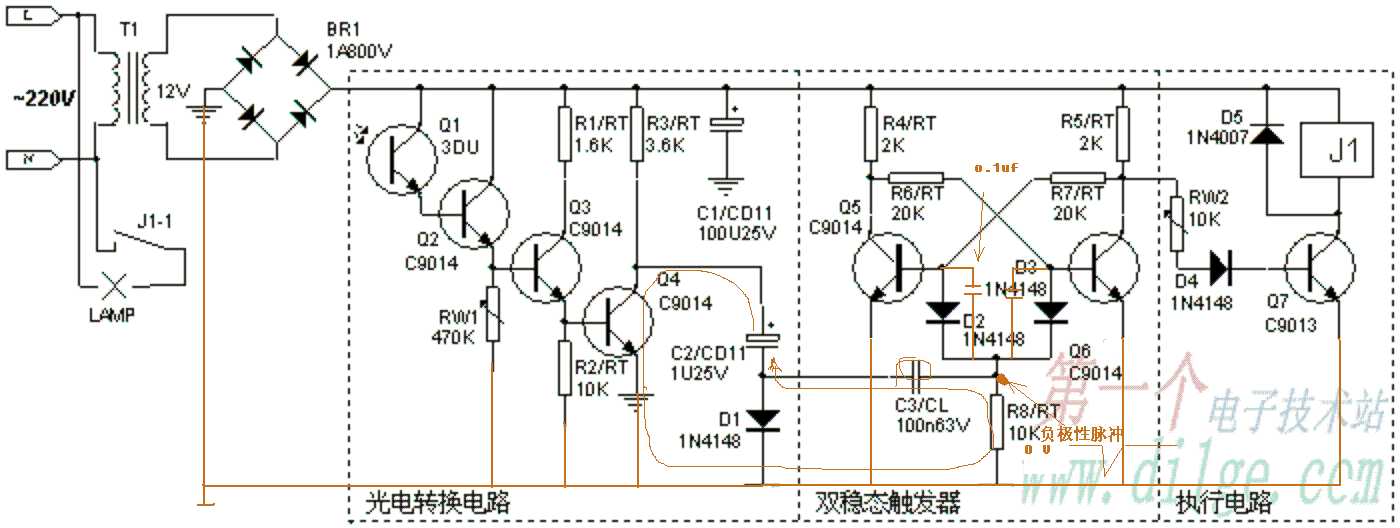 引用引用第31樓風(fēng)流過客flgk于2011-01-19 20:55發(fā)表的 : 謝謝工控學(xué)子的多次指點(diǎn)我把光電電路和雙穩(wěn)態(tài)電路分離開,把光敏電阻用10K電阻替代。并把10K電阻的正電源端懸空以作碰觸。C2換為10UF.未觸發(fā)時(shí),C2與D1中間和地之間的電壓為幾毫伏,觸發(fā)時(shí)電壓為—14V,(RW1調(diào)至330K),沒試驗(yàn)幾次Q4燒毀,換新后,再試驗(yàn),幾次,Q4不觸發(fā),因下班,未及查明原因 [attachment=54474]