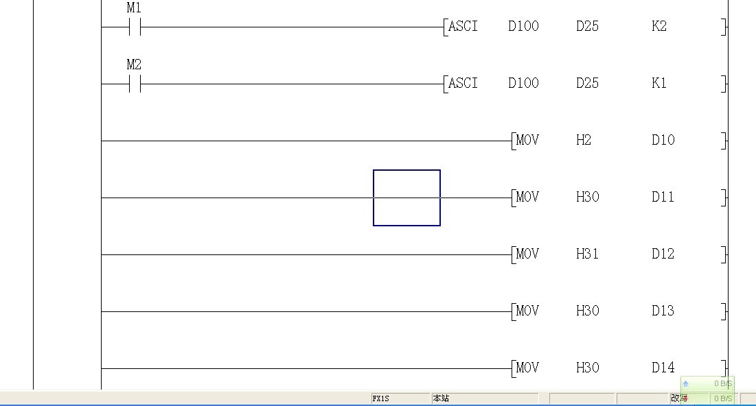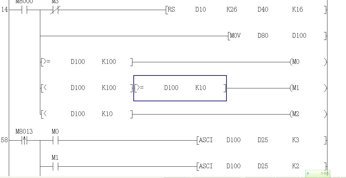 如圖 MOV H123  D100 是我輸入溫度  ASCI  D100  D25 K3  轉化為  H31  H32  H33 分別放到 D25   D26 D27   可現在有個問題我這個只能輸入100以上的溫度。要輸入100以下的溫度就必須把  最后后面三個 MOV  H3  D28 ,   MOV  H0D  D29,  MOV  H0A D30  的寄存器變化。