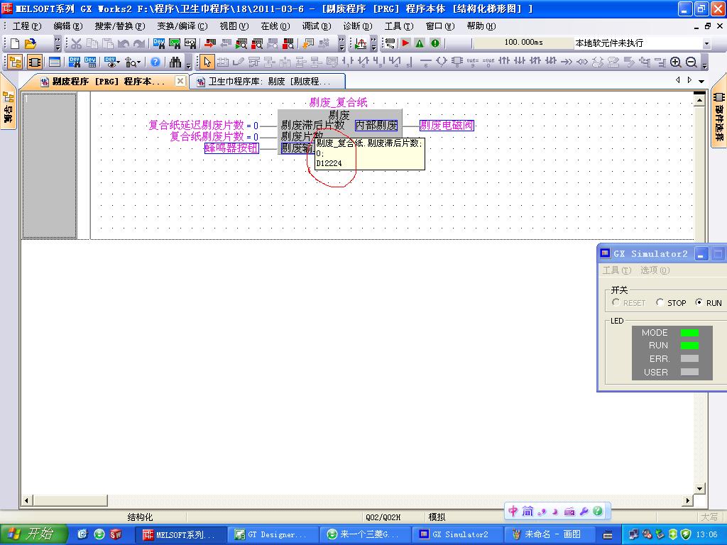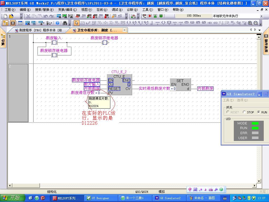 以前也在GX8.5用過,是在FB的輸入變量,在軟件自帶的測試就可以通過,在實際的PLC就出錯,在實際的PLC上,相同的變量在FB實例上是顯示是D12224,而在FB里面引用同一個變量,卻變?yōu)镈12226,不知道是為何呢?下面的截圖是用軟件的模擬運行,顯示的是相同的變量