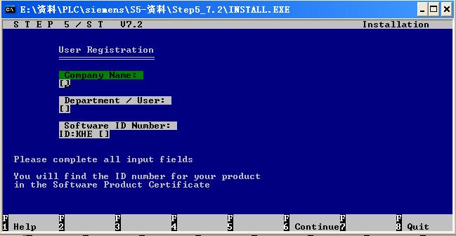 4.在“Company Name”和“Department/User”欄內輸入英文字母,在“SoftWare ID Number”欄內輸入"0123456789",然后按按“F6”鍵進入下一步,等待一段時間后就會提示安裝完成。