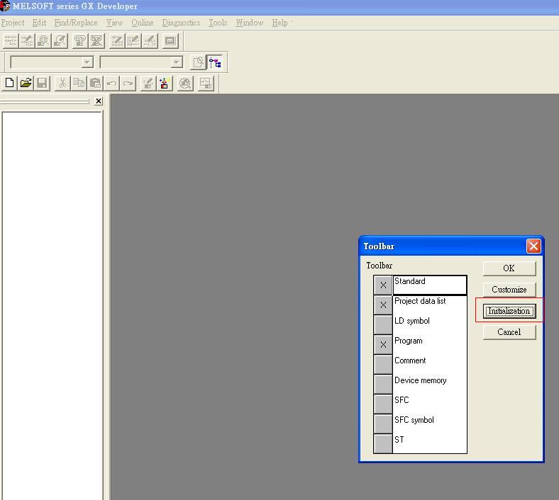 我的三菱PLC軟件打開新建畫面以后,原有的左上角的四排圖標只剩下兩排了,怎么操作也不能恢復。重新安裝軟件也不行。少了編程寫入圖標和它上面那一排,哪位大師能指點一下?