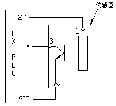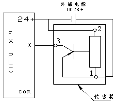 三菱 FX-PLC 的輸入端子既可以接受電流輸入也可接受電流輸出的連接方式,(即 FX-PLC 的輸入端子既可作為漏型輸入也可作為源型輸入連接)關(guān)鍵要掌握接線方式。具體接線方式按下述: NPN 型接近開(kāi)關(guān)接成漏型輸入方式,只需將接近開(kāi)關(guān)的開(kāi)關(guān)輸出端子( + )接入 PLC 的輸入端子,接近開(kāi)關(guān)的另一端子(—)接 PLC 的 COM 端。 PNP 型接近開(kāi)關(guān)接成源型輸入,則應(yīng)把 PLC 的 24V+ 端子接外部電源的負(fù)極,外部電源的正極接接近開(kāi)關(guān)的( + )端子,接近開(kāi)關(guān)的另一端(—)則接 PLC 的輸入端子。
