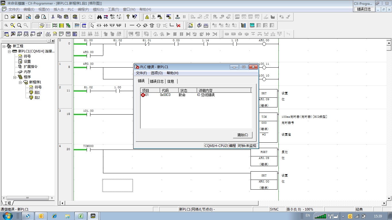 如圖:我這是臺舊設備,PLC:CQM1H 今天新編了一個程序,上傳后不能運行,出現錯誤信息。我格式化PLC內存過一次。不知是程序問題還是PLC問題?求解!