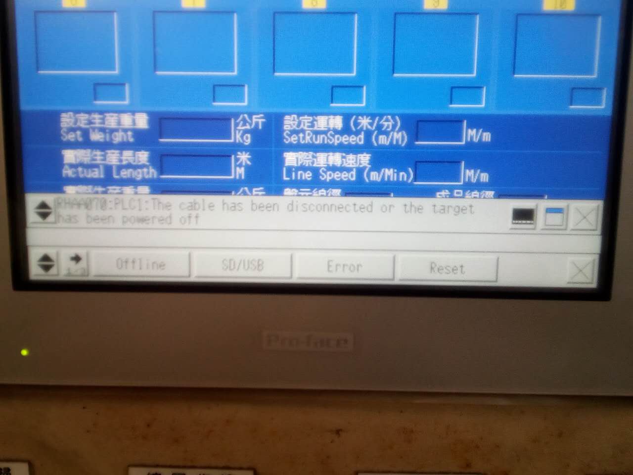 PLC與屏通訊斷線,當(dāng)然顯示不出來了,先查找通訊設(shè)置與檢查通訊線,連上線就OK了