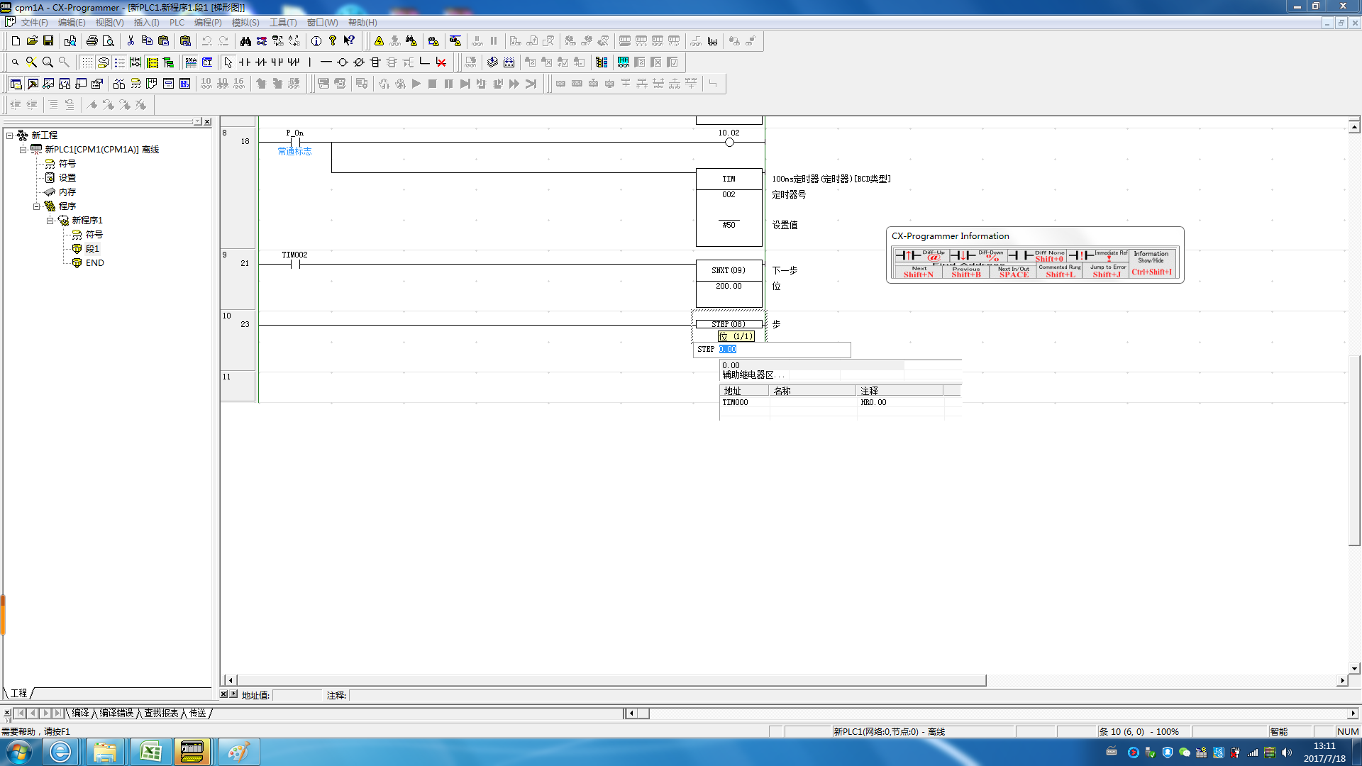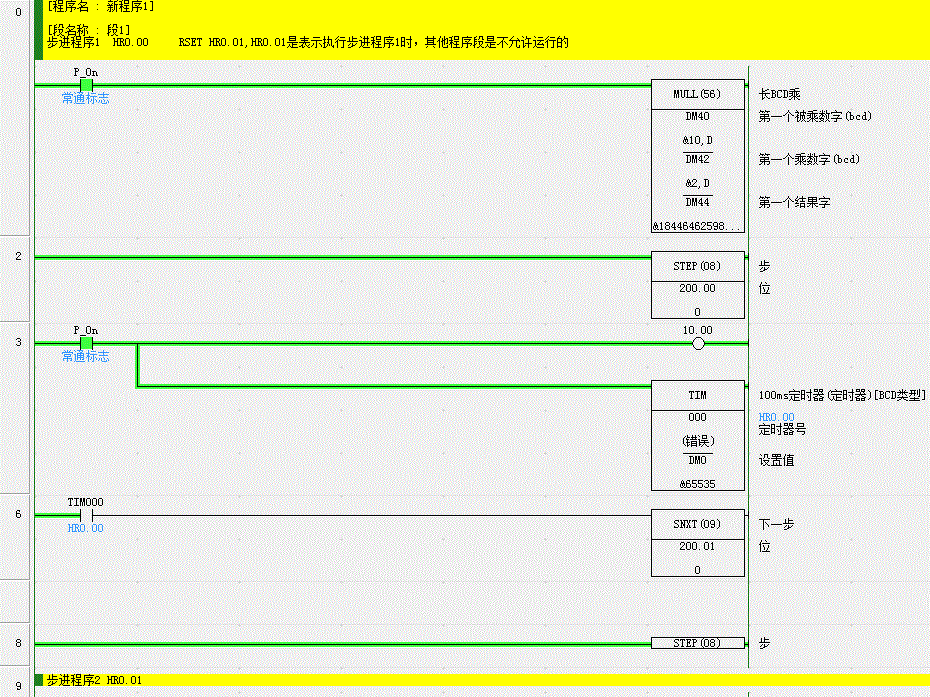 謝謝你的細心解答。我這兒還是有問題  1 如果這步進程序在運行中,怎么強制立即停止呢   2 步進程序結束要用到STEP 指令,STEP錄入要用到一個繼電器,你這里用的是0.00,怎么會是一個輸入點呢,然后錄入的這個繼電器是固定一個繼電器還是根據什么     3 你說步進繼電器用CIO200,CPM1A不是只有一個通道10CH嗎?    能留個電話當面請教嗎?!                        我電話   小周 139 2253 4976