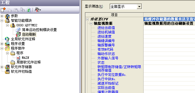 QD75在GX WORKS2 里在自動(dòng)刷新欄里可以很方便的將位置速度讀取,怎么QD77MS就沒(méi)有?
