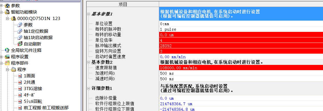 各位大神,原用MR-J3系列伺服控制器,QD75MH1定位 模塊,現(xiàn)更換成MR-J4系列,參數(shù)需要修改嗎,現(xiàn)更換為大功率,另外用GX Configurator QP讀取定位模塊數(shù)據(jù),定位模塊為什么是QD75D1N,每轉(zhuǎn)移動量:0,單位倍數(shù):4脈沖輸出模式:28392,旋轉(zhuǎn)方向設(shè)置:3,這幾項都顯示紅色,現(xiàn)更換大功率電機后,監(jiān)視負載情況一直滿載狀態(tài),現(xiàn)在修改伺服控制器參數(shù)PA09,PB06每次修改寫入后,讀出還是原來數(shù)據(jù)。是和定位模塊設(shè)置有關(guān)嗎?