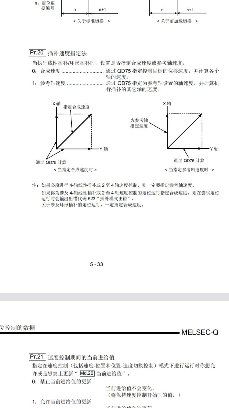 各位大神 最近才學(xué)QD75不久 基本參數(shù) Pr.20 合成速度 是說通過QD75指定的目標(biāo)位移速度 并計(jì)算其它軸的速度 比如