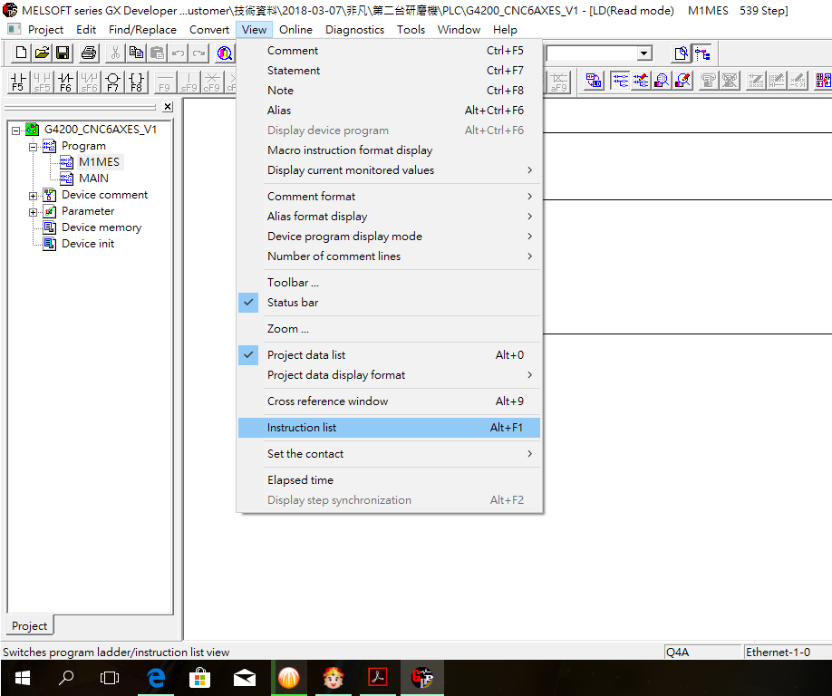引用引用第2樓kenneth于2018-07-19 13:40發表的 :Dear langui,抱歉, 我的開發系統是英文, 但你慢慢研究應該會知道如何設定.你看圖左邊有M1MES的檔案, 先將它點選出來, 然後在Menu 的View選項內要勾選Instruction List, 之後再去撰寫你的Alarm Message.