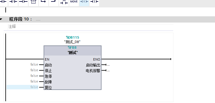 在主程序中OB1調用FB功能塊。賦值實際PLC IO地址