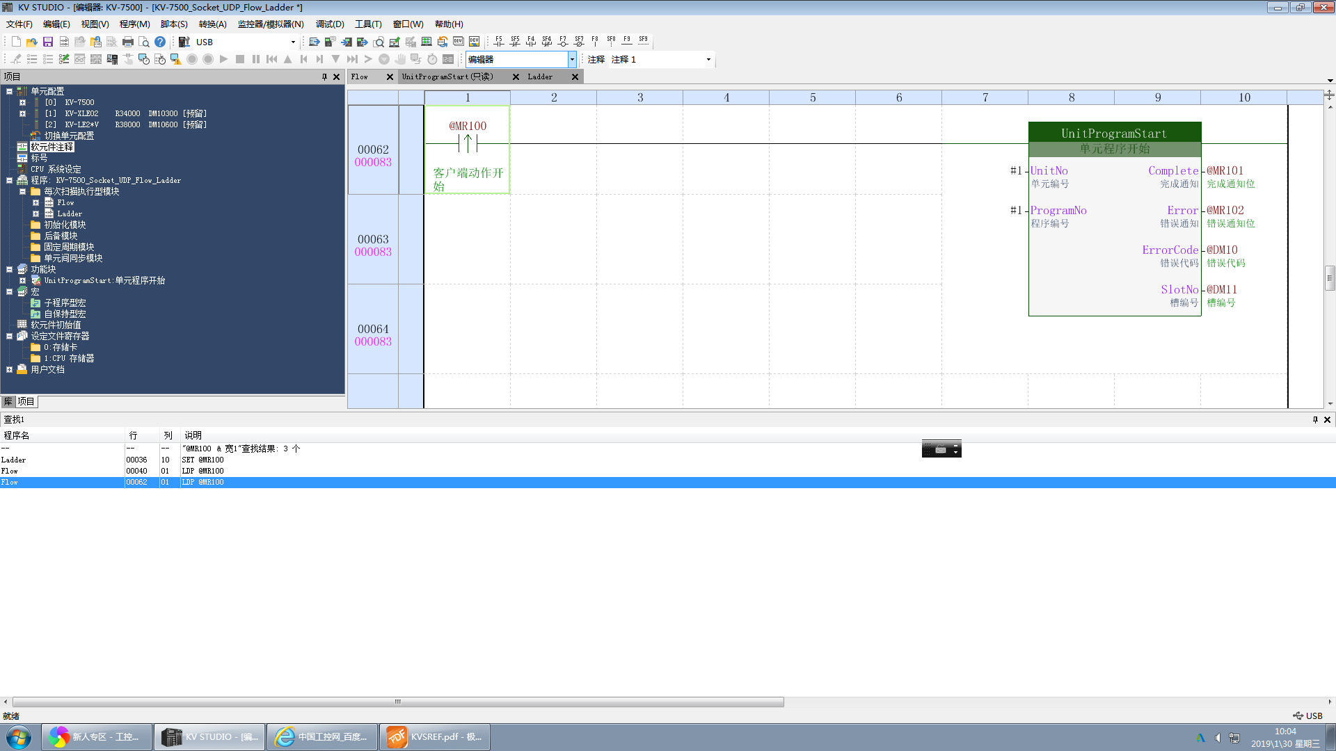 附圖,這是KV-7500自帶的例程,@MR100為局部變量,但為什么兩個(gè)模塊都可以使用呢?