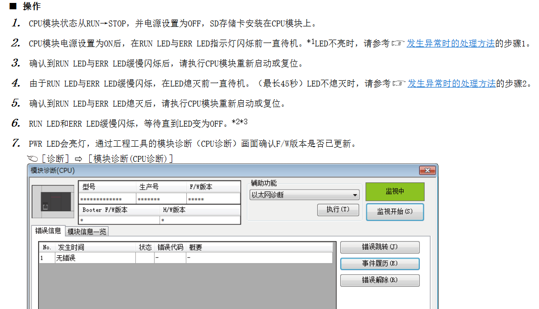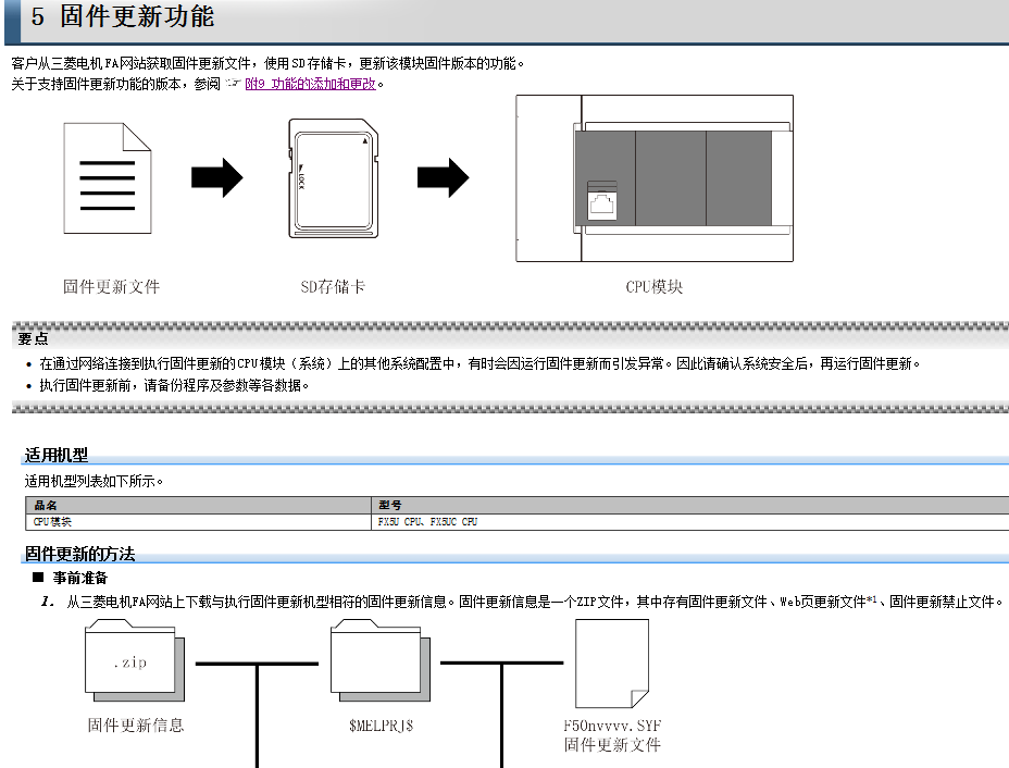 詳情參閱:《FX5U用戶手冊(應用篇)》第2章第5節以及附9,或在 e-Manual Viewer 軟件中跨文檔搜索 固件更新功能