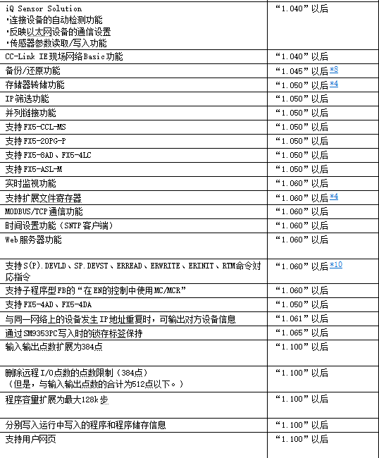FX5U陸續增加了一些功能,這些功能對固件有所要求,比如:
