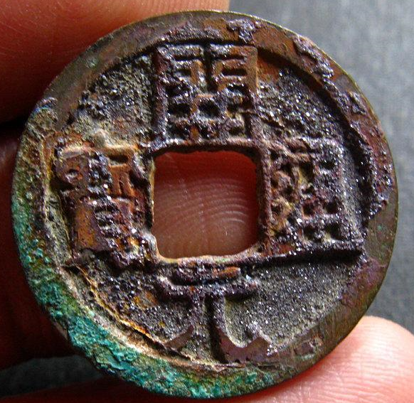 上圖是宋朝的大觀通寶鐵錢,至今也有近千年,鐵質(zhì)的容易生銹,一般看到這樣的也算是好品相的了。