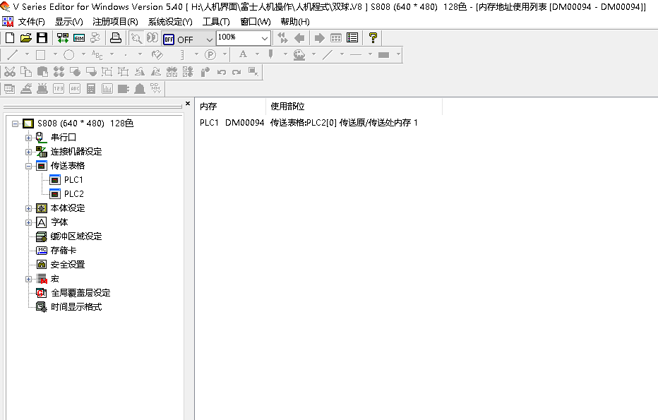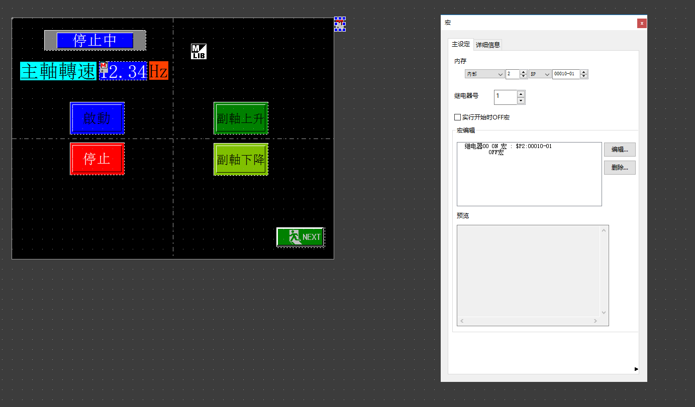 能加你微信幫我分析一下嗎? 還有的話就是我要如何查找這個D94 之所以找不到我是在觸摸屏上的所有頁面挨個挨個點開所有的按鈕和燈看的 我在 工具-查找-(只有宏指令搜索) 我有張截圖是關于宏設置的 觸摸屏就只有兩個宏設置 內存都是(內部-2-$P-00010-01) ID號一個是0 一個是1 我看了下這個內存(內部-2-$P-00010-01) 是和屏幕上的一個燈的地址一樣(主要是告之當這個燈NO時顯示變頻器通訊異常的幾個字) 按你分析如果屏幕上有D94這個按鈕的話 我要如何查找? |