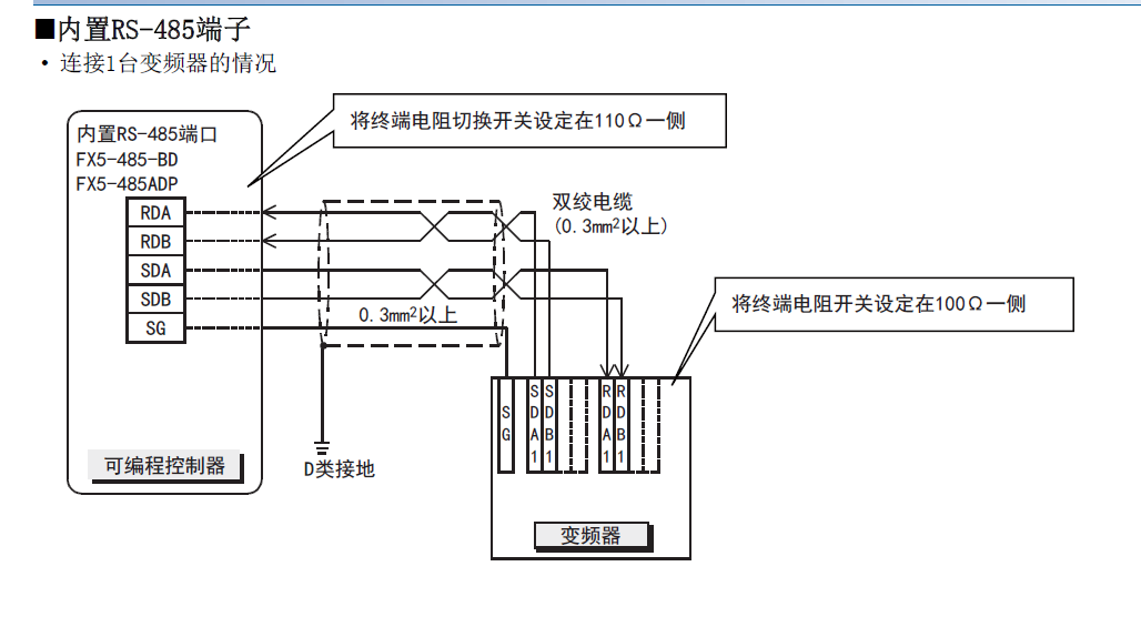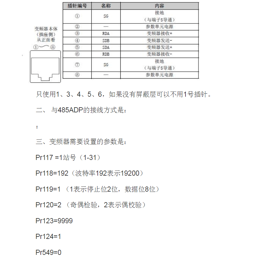 這是接線圖,因為只控制一臺變頻器且距離較短所以沒有接終端電阻。
