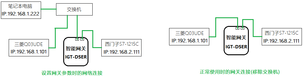 系統(tǒng)的網(wǎng)絡(luò)結(jié)構(gòu)圖,網(wǎng)關(guān)支持熱插拔自恢復(fù),以下是設(shè)置時和運行時的網(wǎng)絡(luò)連接關(guān)系: