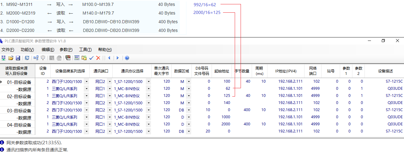 本案例是三菱Q系列PLC與西門子S7-1200的PLC之間通訊,選用智能網(wǎng)關(guān)模塊實現(xiàn),PLC通訊智能網(wǎng)關(guān)IGT-DSER支持各種PLC之間多對多通訊;PLC無需編程,方便快速實施;因為是多線程的交互模式,所以可以保證高實時性;支持串口、網(wǎng)口通訊,以及WIFI、4G無線通訊。 想要實現(xiàn)的通訊任務(wù)如下:
