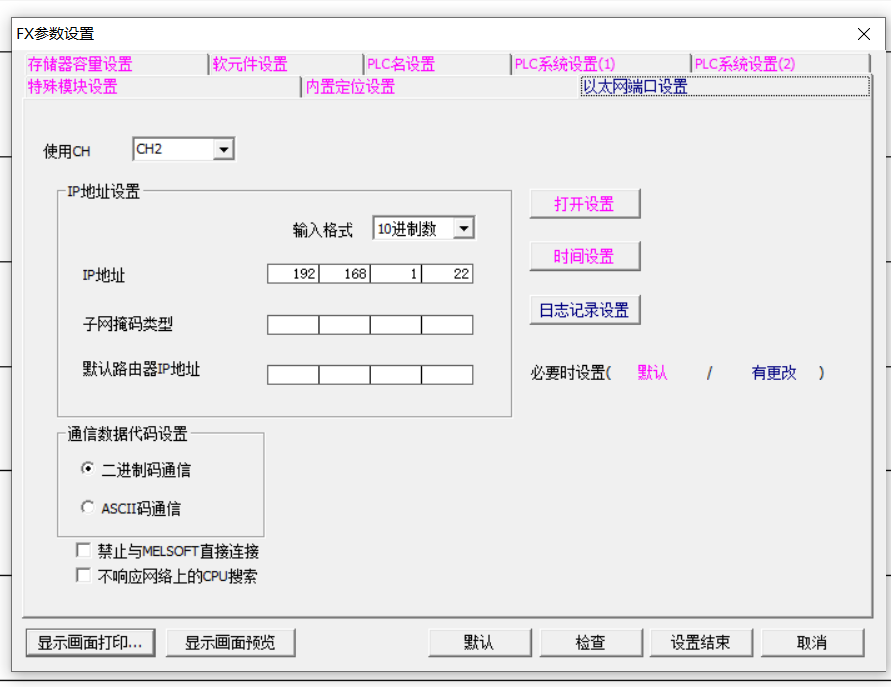 本人用一臺FX3U-64MT的PLC跟FX3U-ENET-ADP模塊連接,中間轉接板FX3U-422BD。設置如圖。現在出現問題:程序監控沒有問題,中途修改使用轉換+RUN模式寫入也能正常修改程序不發生錯誤,就是使用“在線”“寫入”時就出問題,當程序寫完準備打開RUN模式的時候PLC錯誤燈就亮起,通訊中斷,但是斷電重啟后由恢復正常,新程序也可以正常執行。ADP模塊是“POWER”“100M”“SD/RD”三個燈亮。