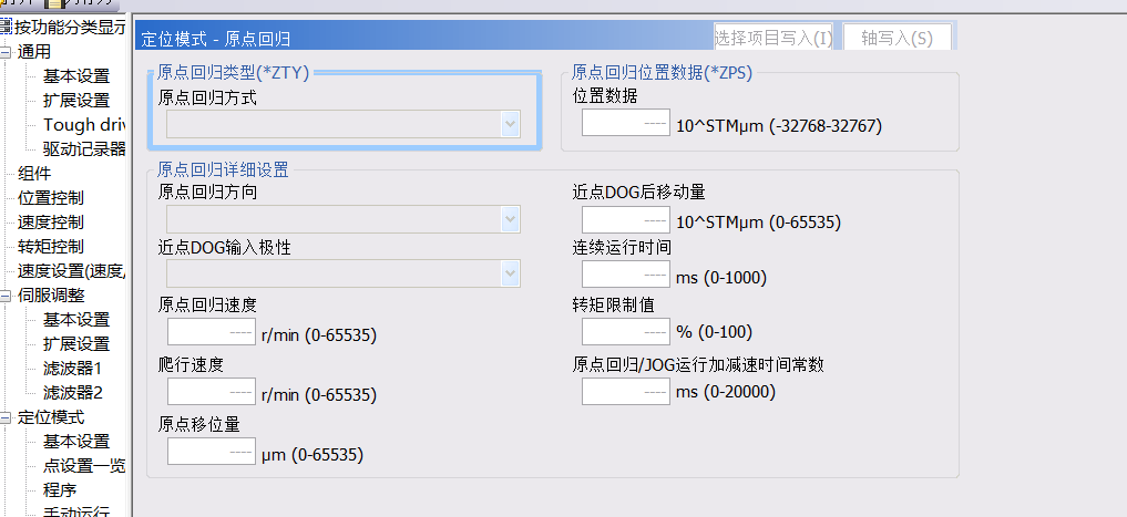 原點回歸方式等參數是灰色的 不能設定