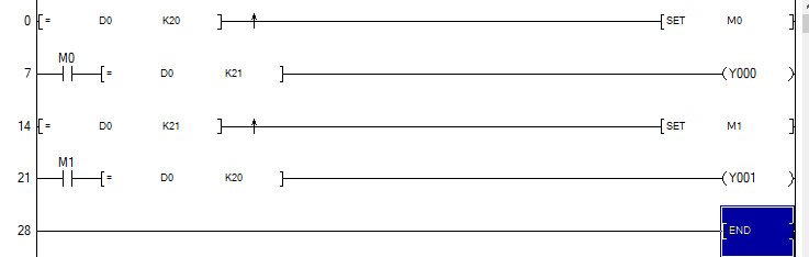 如題   當D0的值由20增加到21或由21減少到20,如何編程在數值改變時觸發開關???謝謝