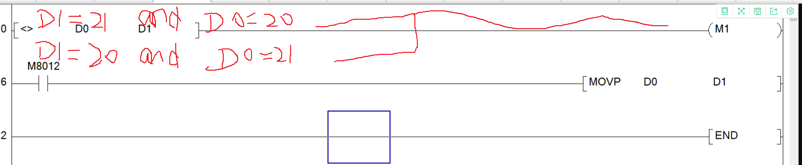 那就把4樓的改成 D0>D2 一個判斷  D0<D2 一個判斷,再分別輸出M值 就可以了。