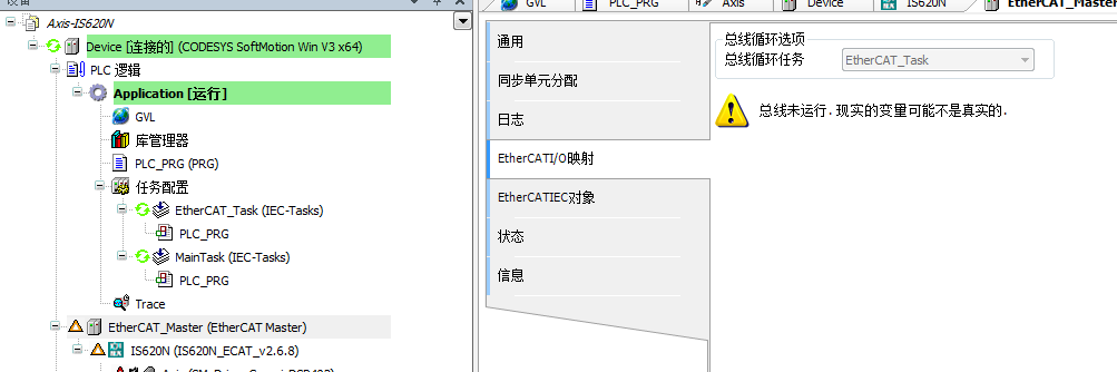 CODESYS SoftMoition win EtherCAT總線未運行,現實的變量可能不是真實的,連通又斷開連通又斷開,