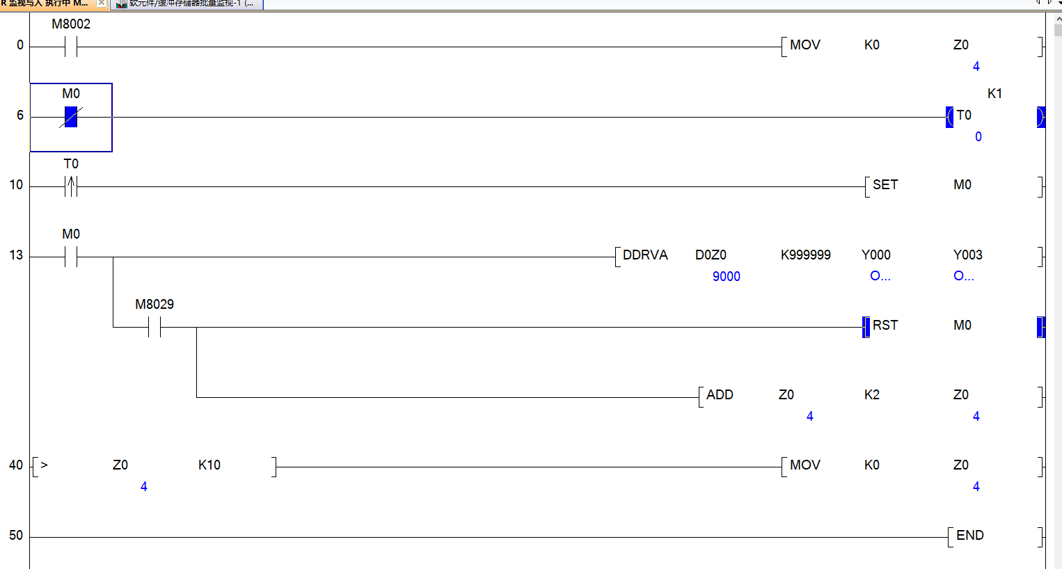for指令只能夠處理一個掃描周期內的數據處理,對于定位動作需要使用變址Z來控制