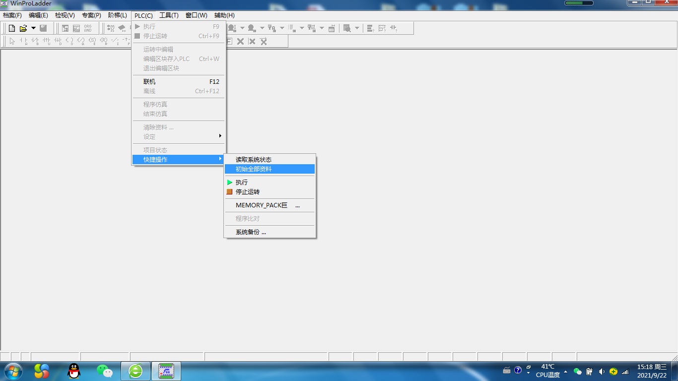 打開編程軟件---PLC----快捷操作-----初始全部資料