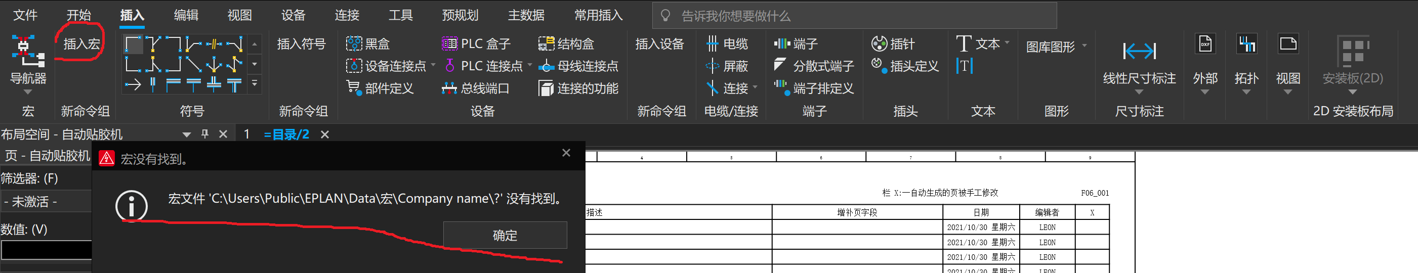 如題 eplan 2022 新建的自定義功能插入宏命令為什么不行