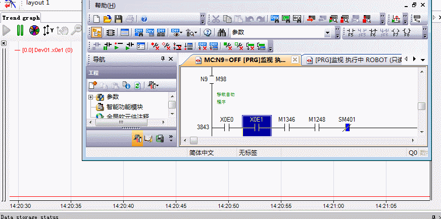 對輸入IO_X0E1進行在線監視記錄,顯示,方便對故障原因進行分析,方便維修。