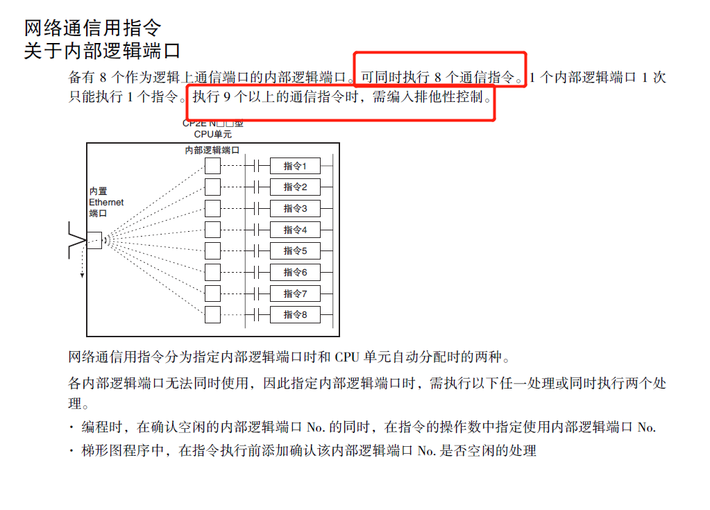 CP2E-N手冊(cè)說(shuō)FINS通信中RECV和SEND指令可以同時(shí)使用8個(gè)指令,PLC備有8 個(gè)作為邏輯上通信端口的內(nèi)部邏輯端口。可同時(shí)執(zhí)行8 個(gè)通信指令。但是實(shí)際使用時(shí)有問(wèn)題